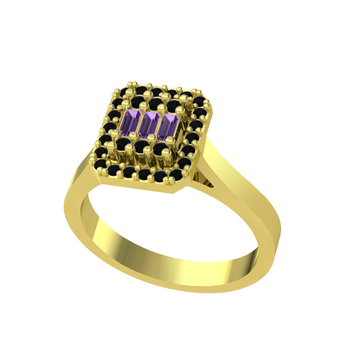 Ametist ve siyah zirkon 925 ayar altın kaplama gümüş yüzük