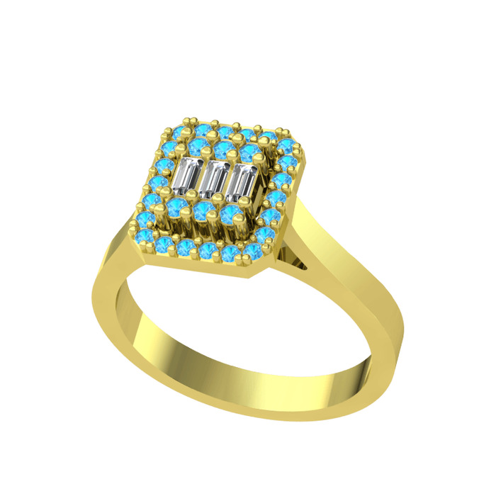 Beyaz zirkon ve akuamarin 18 ayar altın yüzük