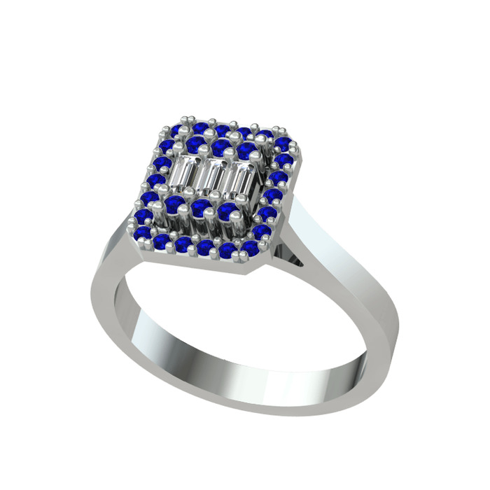 Beyaz zirkon ve lab safir 925 ayar gümüş yüzük