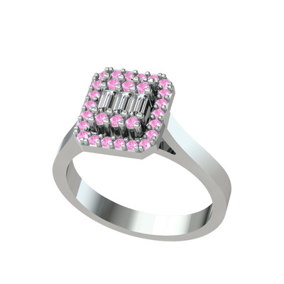 Beyaz zirkon ve pembe kuvars 14 ayar beyaz altın yüzük