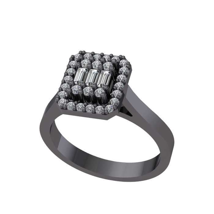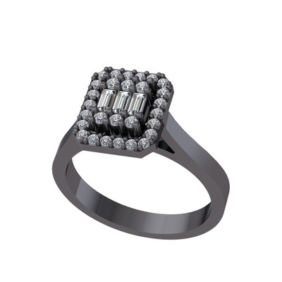 Beyaz zirkon ve pırlanta 925 ayar siyah rodyum kaplama gümüş yüzük (0.308 karat)