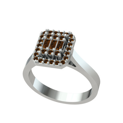 Dumanlı kuvars 14 ayar beyaz altın yüzük