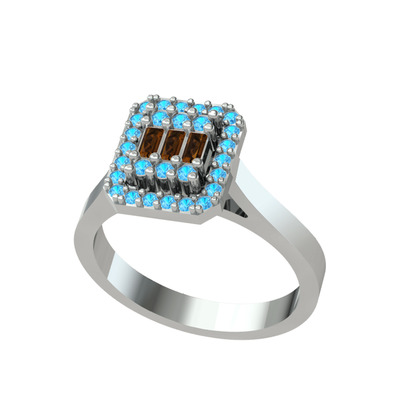 Dumanlı kuvars ve akuamarin 14 ayar beyaz altın yüzük