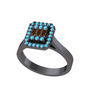 Dumanlı kuvars ve akuamarin 925 ayar siyah rodyum kaplama gümüş yüzük