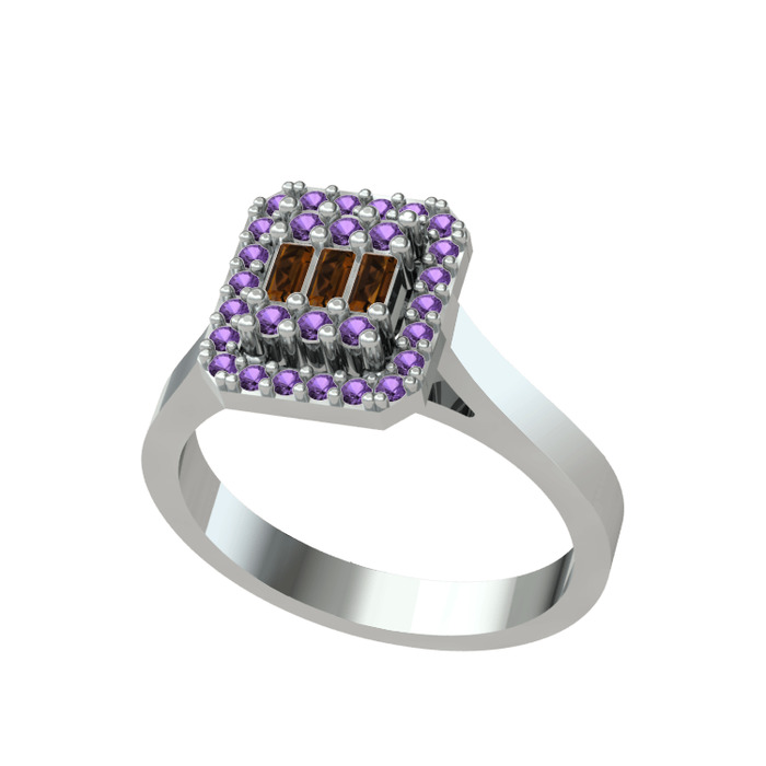 Dumanlı kuvars ve ametist 18 ayar beyaz altın yüzük