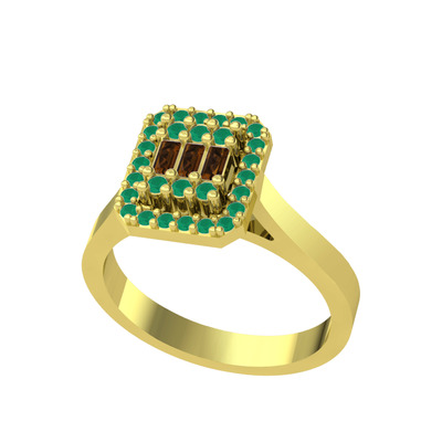 Dumanlı kuvars ve kök zümrüt 925 ayar altın kaplama gümüş yüzük