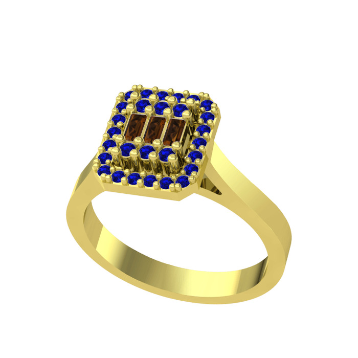 Dumanlı kuvars ve lab safir 8 ayar altın yüzük