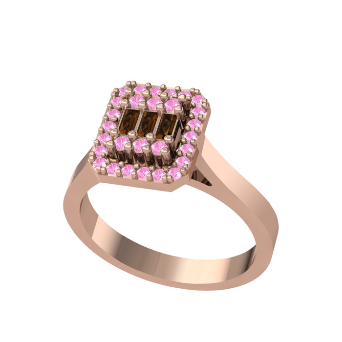 Dumanlı kuvars ve pembe kuvars 18 ayar rose altın yüzük