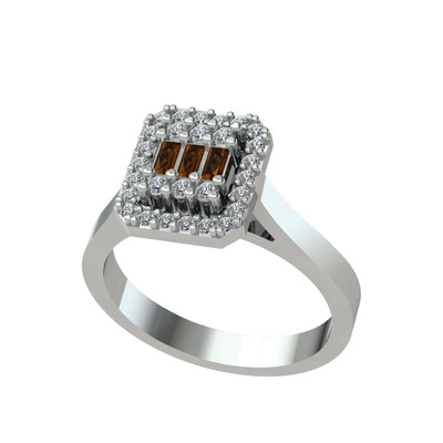 Dumanlı kuvars ve pırlanta 18 ayar beyaz altın yüzük (0.308 karat)