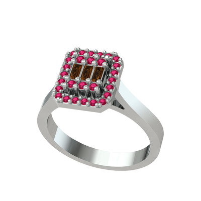 Dumanlı kuvars ve rodolit garnet 8 ayar beyaz altın yüzük
