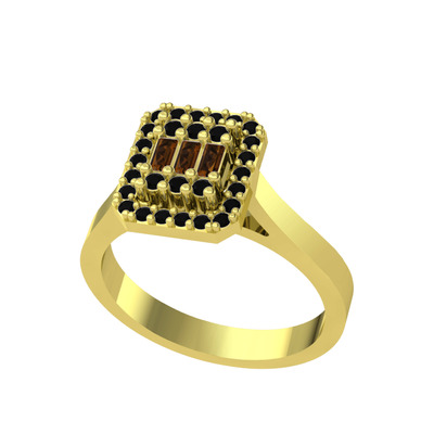 Dumanlı kuvars ve siyah zirkon 14 ayar altın yüzük
