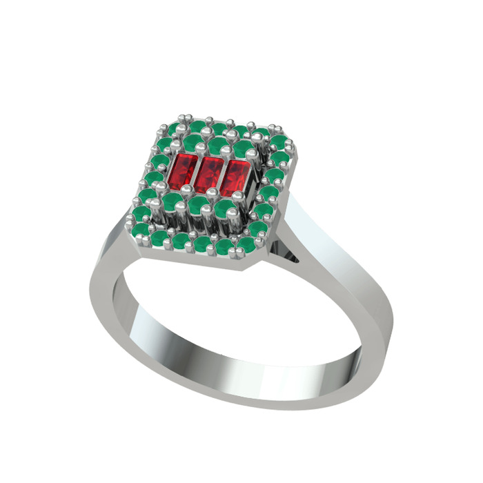 Garnet ve kök zümrüt 18 ayar beyaz altın yüzük