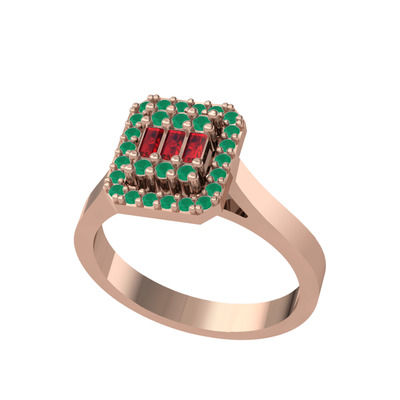 Garnet ve kök zümrüt 18 ayar rose altın yüzük