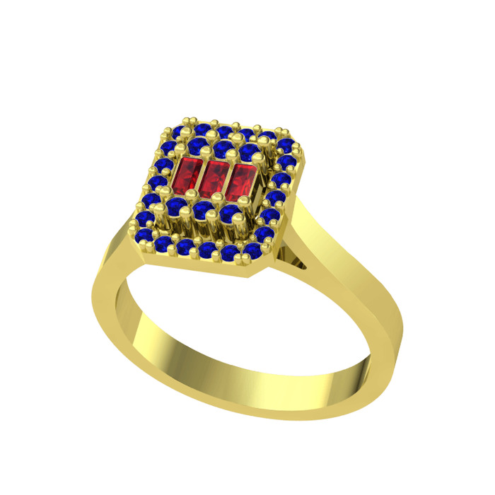 Garnet ve lab safir 18 ayar altın yüzük