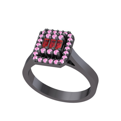 Garnet ve pembe kuvars 925 ayar siyah rodyum kaplama gümüş yüzük
