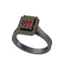 Garnet ve peridot 925 ayar siyah rodyum kaplama gümüş yüzük