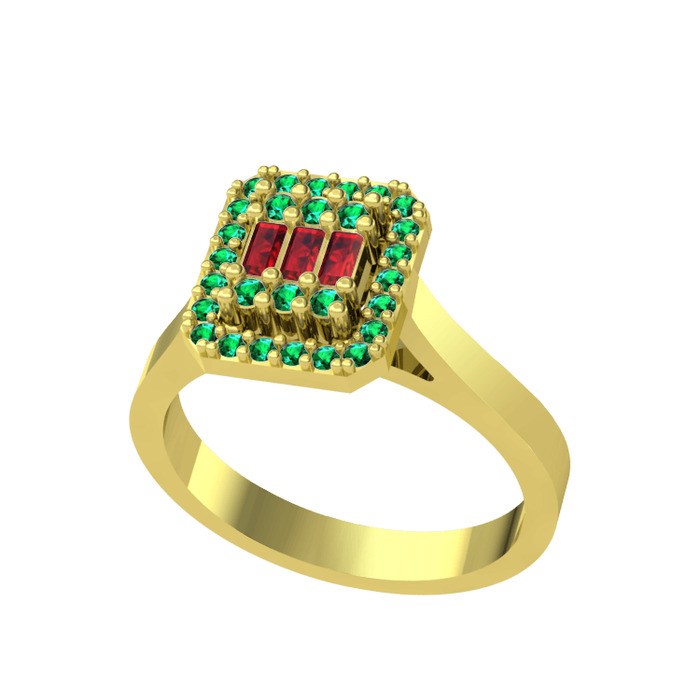 Garnet ve yeşil kuvars 18 ayar altın yüzük