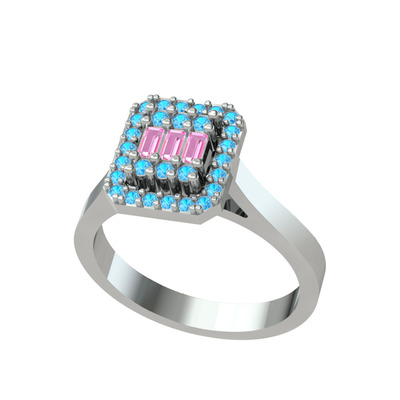 Pembe kuvars ve akuamarin 14 ayar beyaz altın yüzük