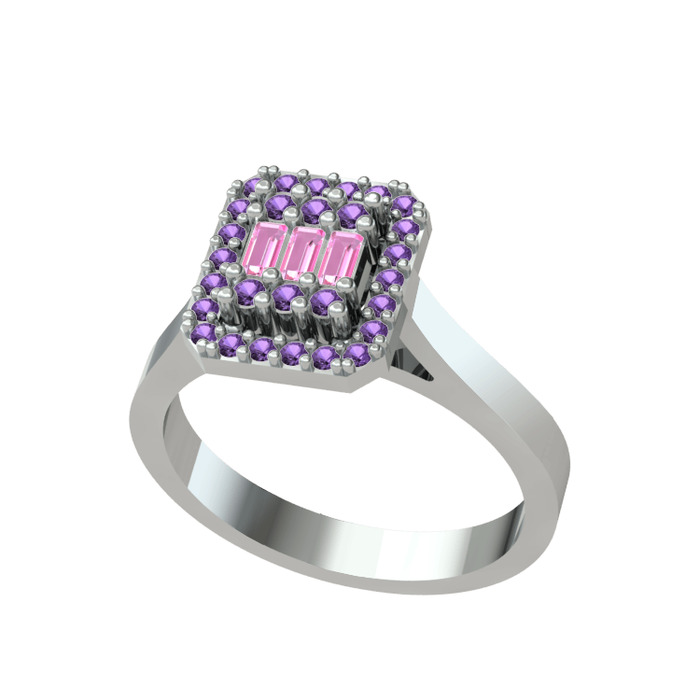 Pembe kuvars ve ametist 14 ayar beyaz altın yüzük