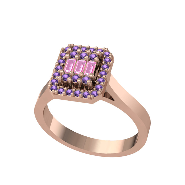 Pembe kuvars ve ametist 14 ayar rose altın yüzük