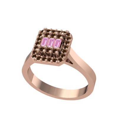 Pembe kuvars ve dumanlı kuvars 18 ayar rose altın yüzük