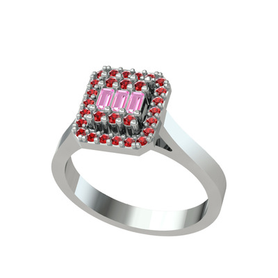 Pembe kuvars ve garnet 8 ayar beyaz altın yüzük