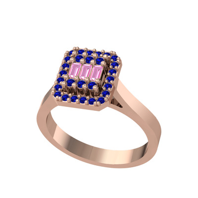 Pembe kuvars ve lab safir 18 ayar rose altın yüzük