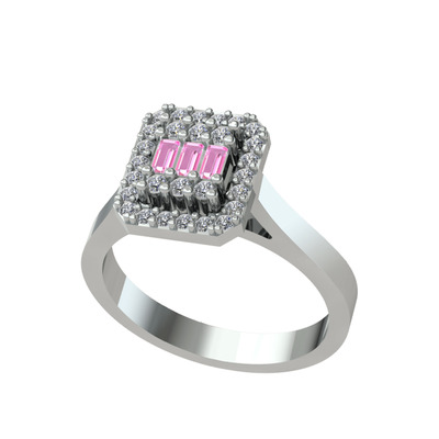 Pembe kuvars ve pırlanta 14 ayar beyaz altın yüzük (0.308 karat)
