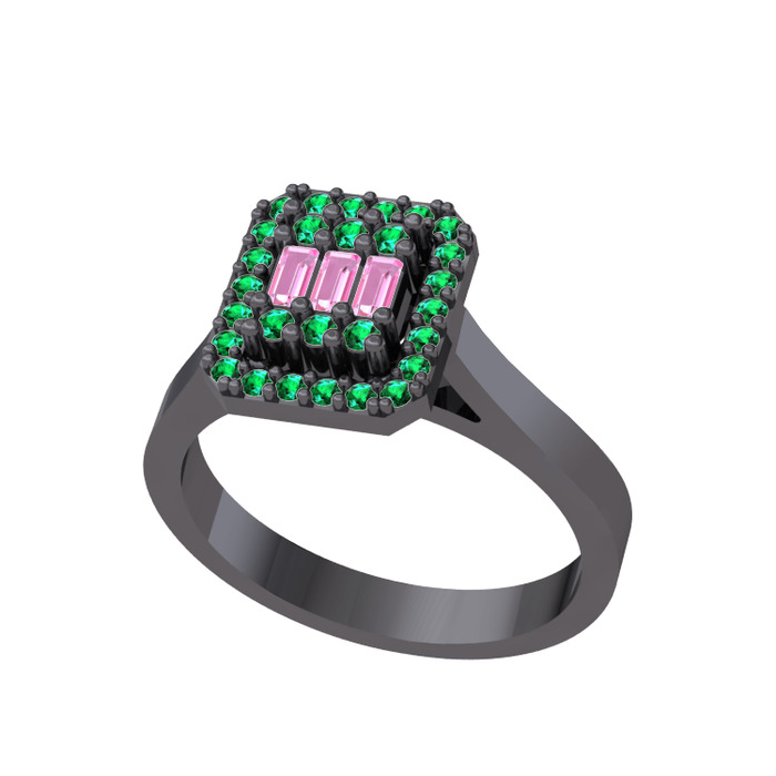 Pembe kuvars ve yeşil kuvars 925 ayar siyah rodyum kaplama gümüş yüzük