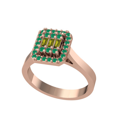 Peridot ve kök zümrüt 8 ayar rose altın yüzük