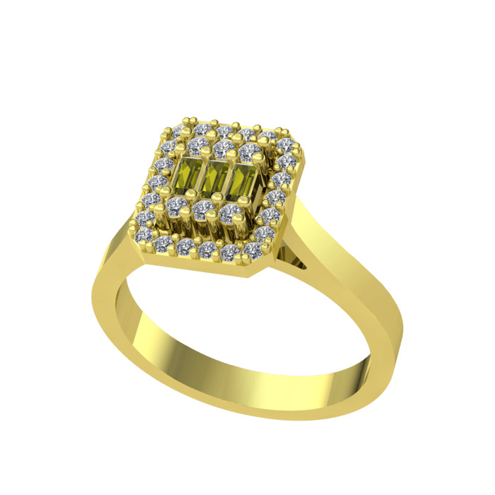 Peridot ve pırlanta 925 ayar altın kaplama gümüş yüzük (0.308 karat)