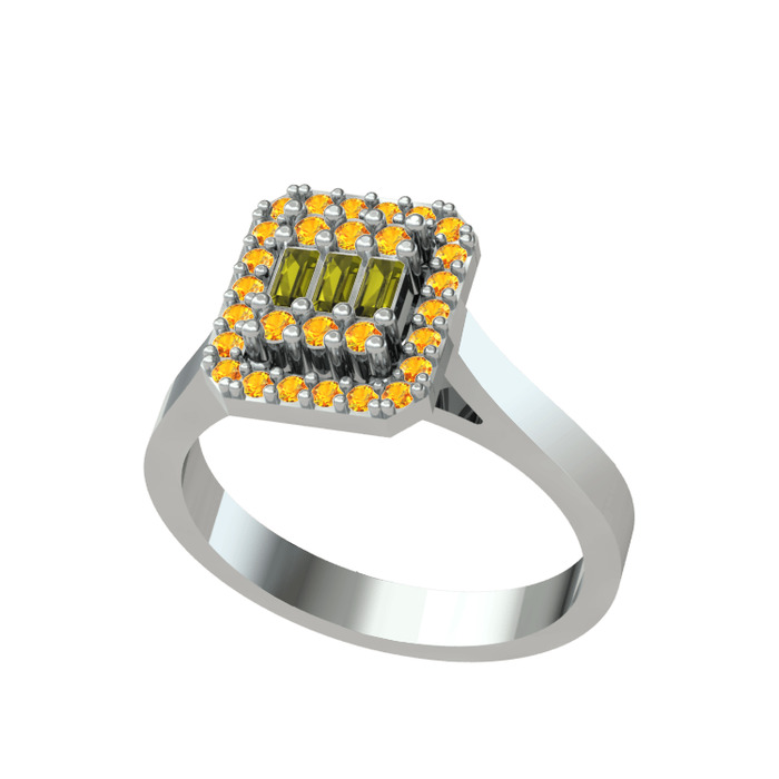 Peridot ve sitrin 18 ayar beyaz altın yüzük