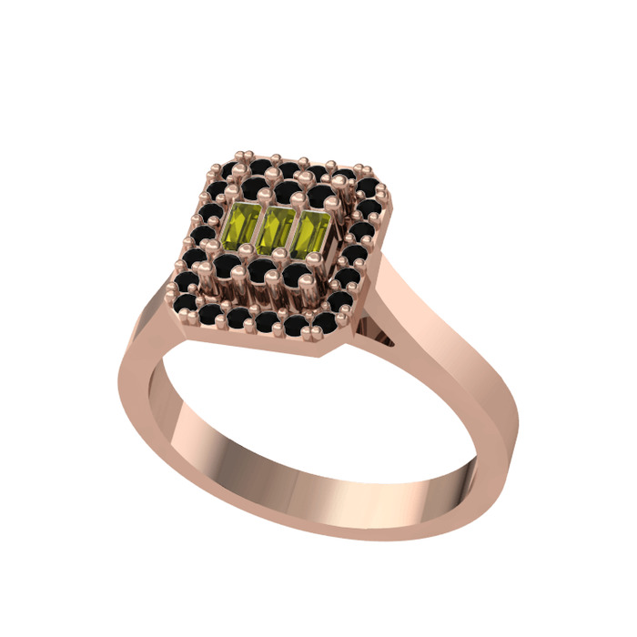 Peridot ve siyah zirkon 18 ayar rose altın yüzük