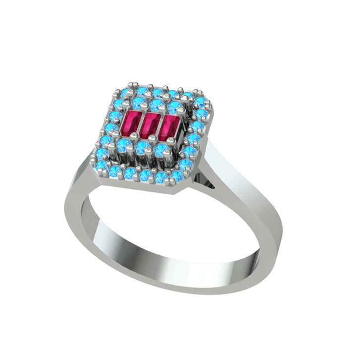 Rodolit garnet ve akuamarin 925 ayar gümüş yüzük