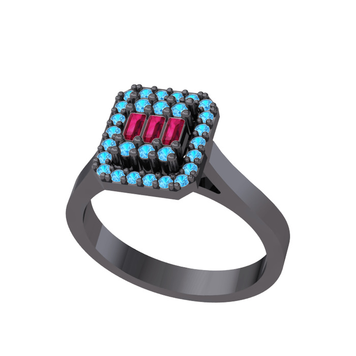 Rodolit garnet ve akuamarin 925 ayar siyah rodyum kaplama gümüş yüzük
