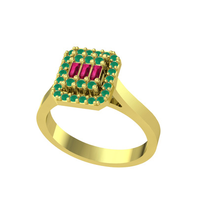 Rodolit garnet ve kök zümrüt 925 ayar altın kaplama gümüş yüzük