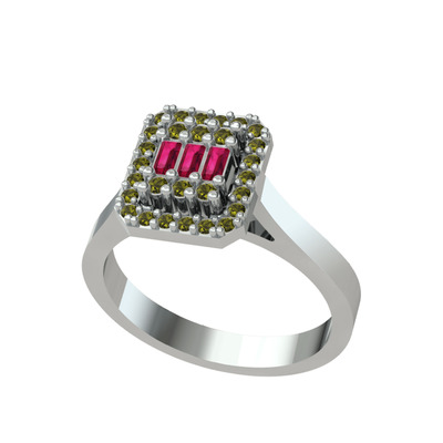 Rodolit garnet ve peridot 8 ayar beyaz altın yüzük