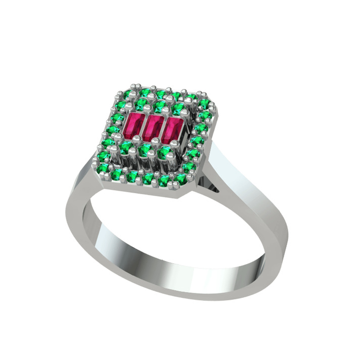 Rodolit garnet ve yeşil kuvars 8 ayar beyaz altın yüzük