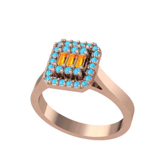 Sitrin ve akuamarin 18 ayar rose altın yüzük