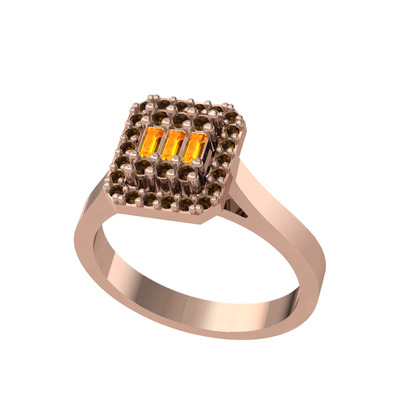 Sitrin ve dumanlı kuvars 14 ayar rose altın yüzük