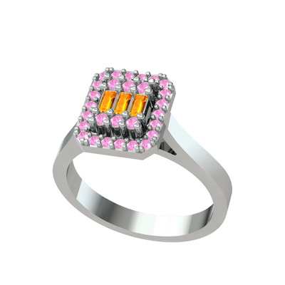Sitrin ve pembe kuvars 18 ayar beyaz altın yüzük