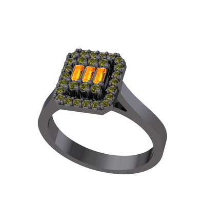 Sitrin ve peridot 925 ayar siyah rodyum kaplama gümüş yüzük
