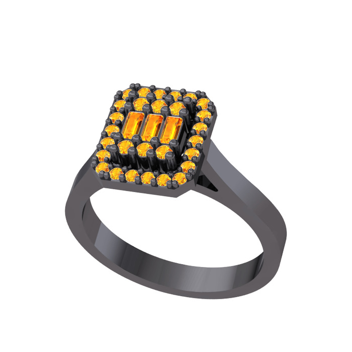 Sitrin 925 ayar siyah rodyum kaplama gümüş yüzük