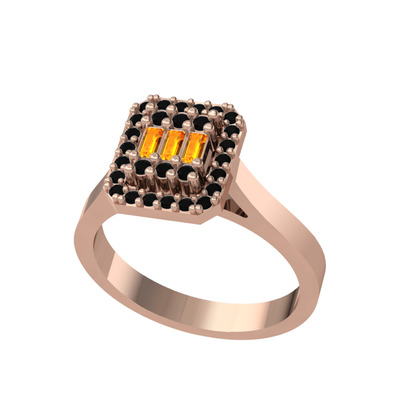 Sitrin ve siyah zirkon 925 ayar rose altın kaplama gümüş yüzük