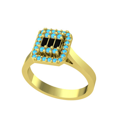 Siyah zirkon ve akuamarin 925 ayar altın kaplama gümüş yüzük