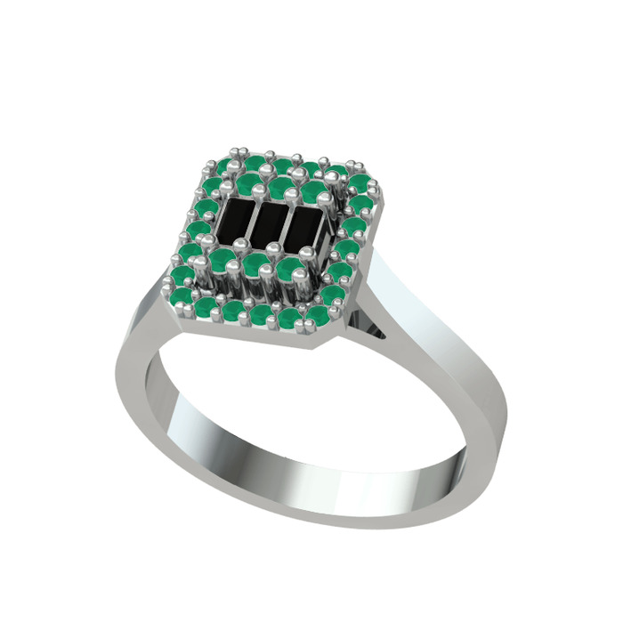 Siyah zirkon ve kök zümrüt 18 ayar beyaz altın yüzük