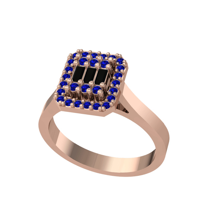 Siyah zirkon ve lab safir 925 ayar rose altın kaplama gümüş yüzük