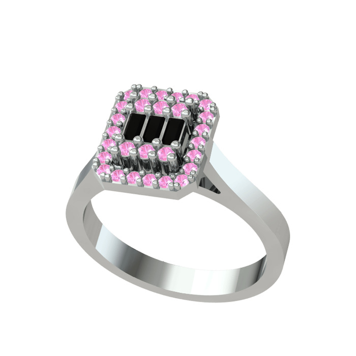 Siyah zirkon ve pembe kuvars 8 ayar beyaz altın yüzük