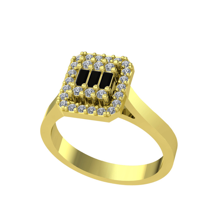 Siyah zirkon ve pırlanta 925 ayar altın kaplama gümüş yüzük (0.308 karat)