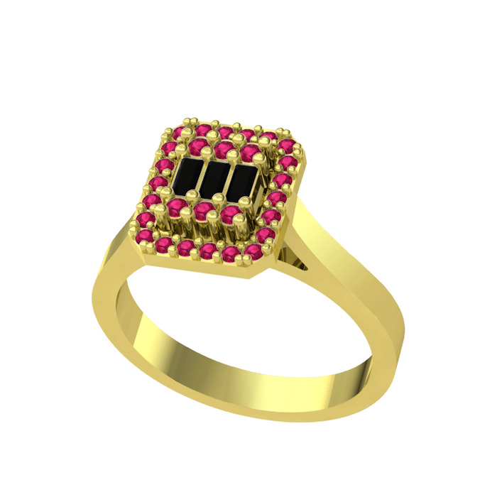 Siyah zirkon ve rodolit garnet 14 ayar altın yüzük